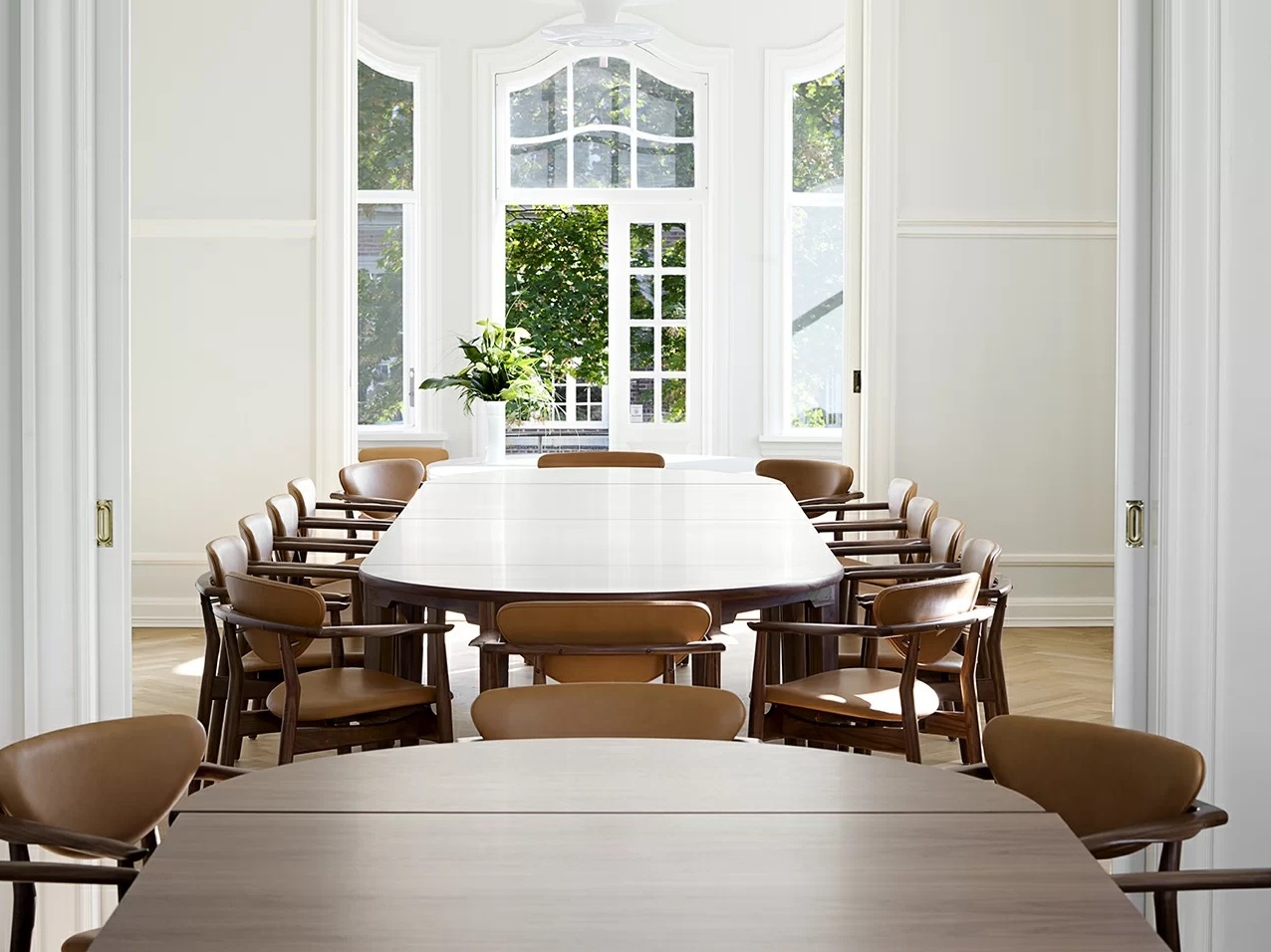 Begge stuer er indrettet med ovale borde og stuerne er forbundet med franske døre.