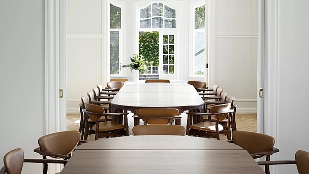 Two en-suite rooms overviewing Kolding Fjord form the perfect setting for undisturbed meetings. Both rooms are fitted with oval tables and the rooms are connected by French doors. This means for you as a guest that you can hold meetings in private settings with modern AV equipment in one room and enjoy exclusive meals in the other.