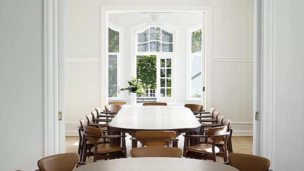 Two en-suite rooms overviewing Kolding Fjord form the perfect setting for undisturbed meetings. Both rooms are fitted with oval tables and the rooms are connected by French doors. This means for you as a guest that you can hold meetings in private settings with modern AV equipment in one room and enjoy exclusive meals in the other.