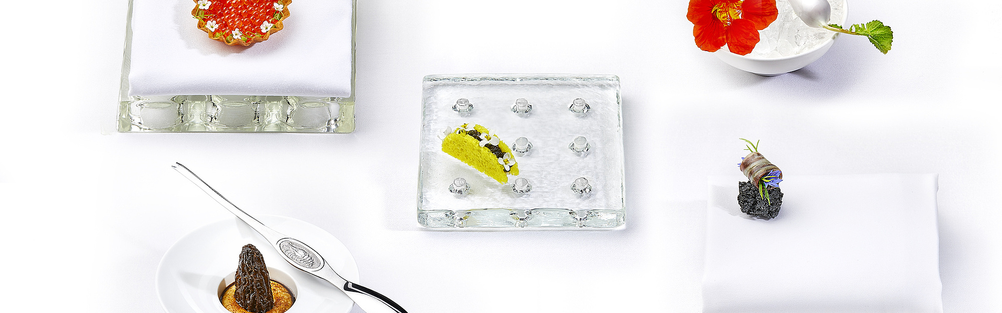 På Louisehøj er der mulighed for både at dække op ved ovale samt runde borde. Der dækkes op med smukke duge og servietter designet af Arne Jacobsen og fremstillet hos Georg Jensen Damask i Kolding.